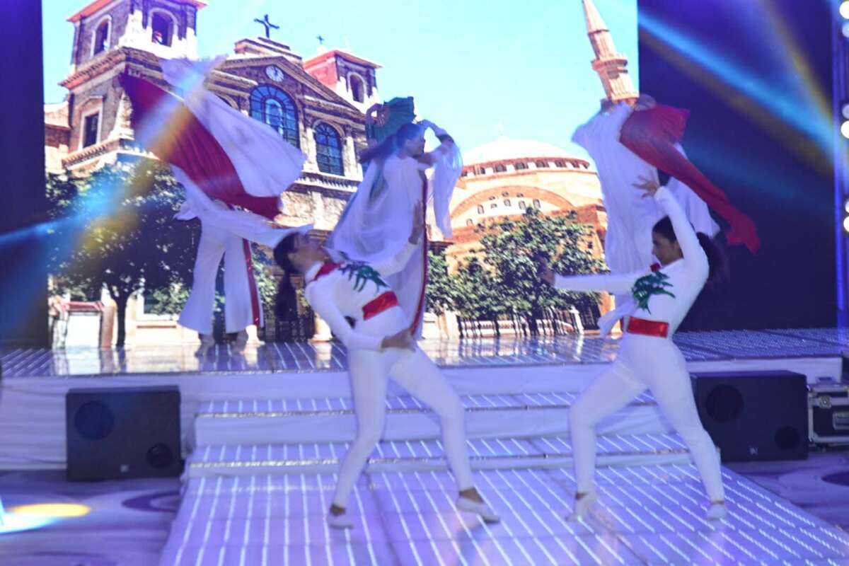 بدأ الحفل بالنشيد الوطني اللبناني، ثم لوحة فنيّة راقصة لفرقة جوزيف سلّوم، من وحي ذكرى الاستقلال والإيمان بقيامة بيروت من تحت الردم، على وقع أغنية النجمة نانسي عجرم “إلى بيروت الأنثى”.