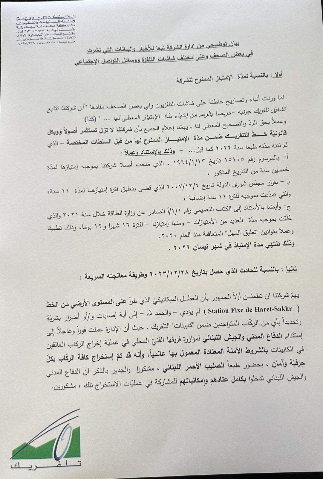 بعد حادثة تعطّل تلفريك جونية.. بيان توضيحي من الشركة اللبنانية لإنماء السياحة والتلفريك…